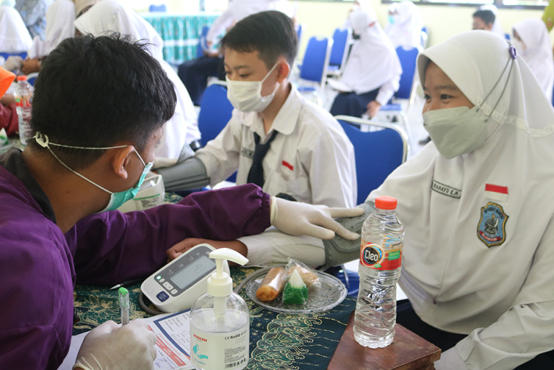 vaksinasi dosis dua bersama polsek dan koramil yang bertempat di ruang pertemuan smpn 1 baureno dan diikuti oleh 320 siswa siswi smpn 1 baureno
