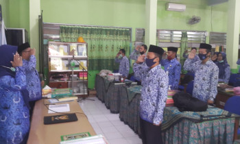 Penilaian Kinerja Kepala Sekolah (PKSS) yang dilaksanakan di ruang pertemuan SMPN 1 Baureno ...